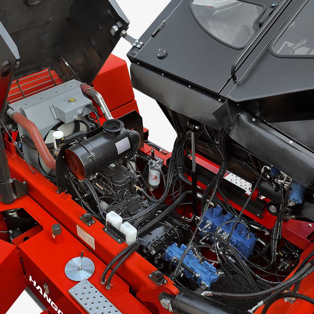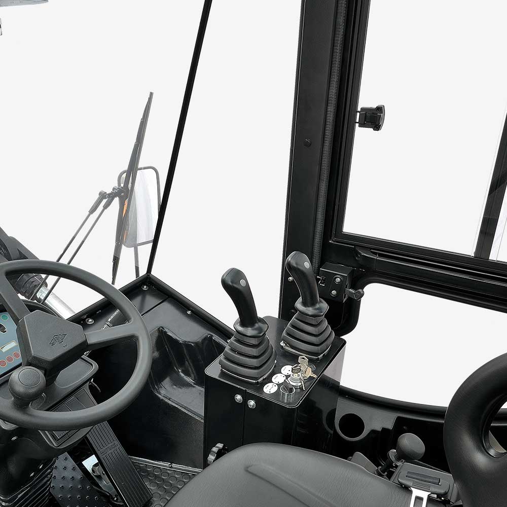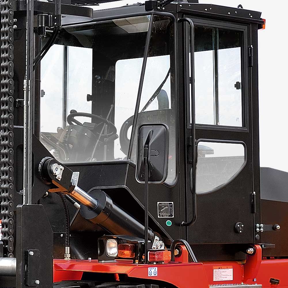 Tilting cabin is easy to daily service, and the wide view mast, high positioned seat provide good front visibility to operator.