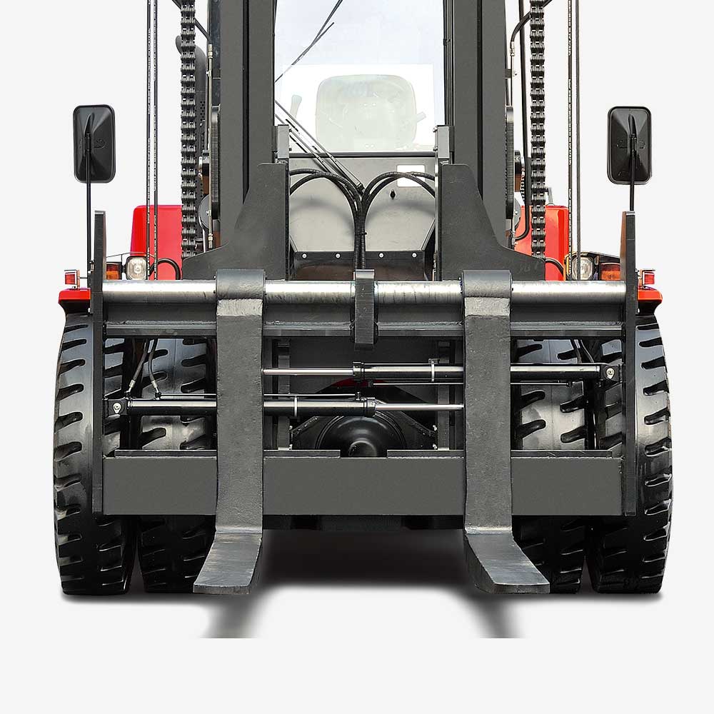Transverse steering axle with full hydraulic steering and sensor system is to make sure easy steering.
