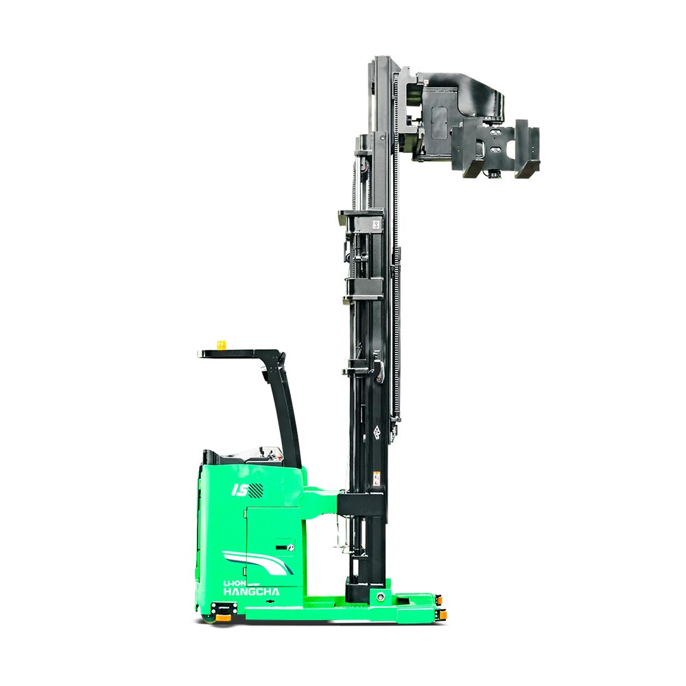 A series stand-on man-down turret truck is a new product special for narrow aisles developed by Hangcha. With advanced 48V permanent-magnet brushless electric attachment head, this stacker features advanced performance, comfortable operation, safety and reliability, and low cost of use and maintenance. The light weight of the whole stacker and the four-pivot structure for the chassis allow smaller equivalent load of floors, higher space availability of your warehouses, being an ideal tool to improve the capacity of your warehouses.