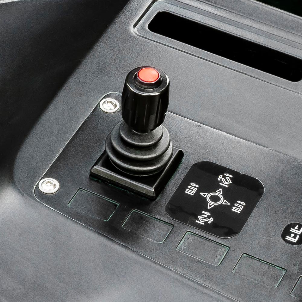 The turning deceleration function provided for the standard configuration makes the turning deceleration of the stacker smoother and safer. For the standard configuration, an in-place switch is provided for the driver to judge whether he/she is in the correct operating position. When not in the correct position, driving and hydraulic operations are prohibited.