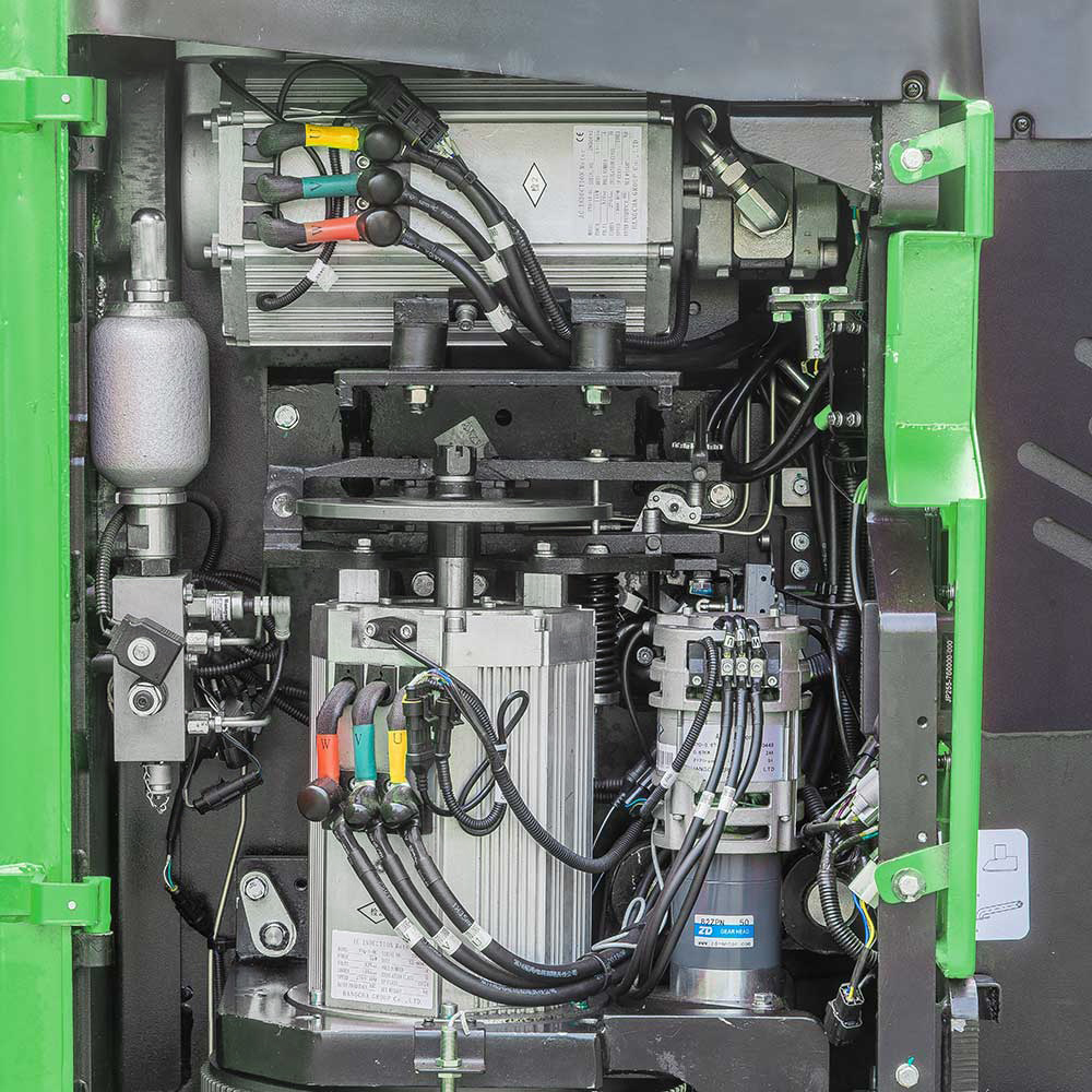 Suspension control system efectively reduces the shake when turning、lifting and moving forward and backward.