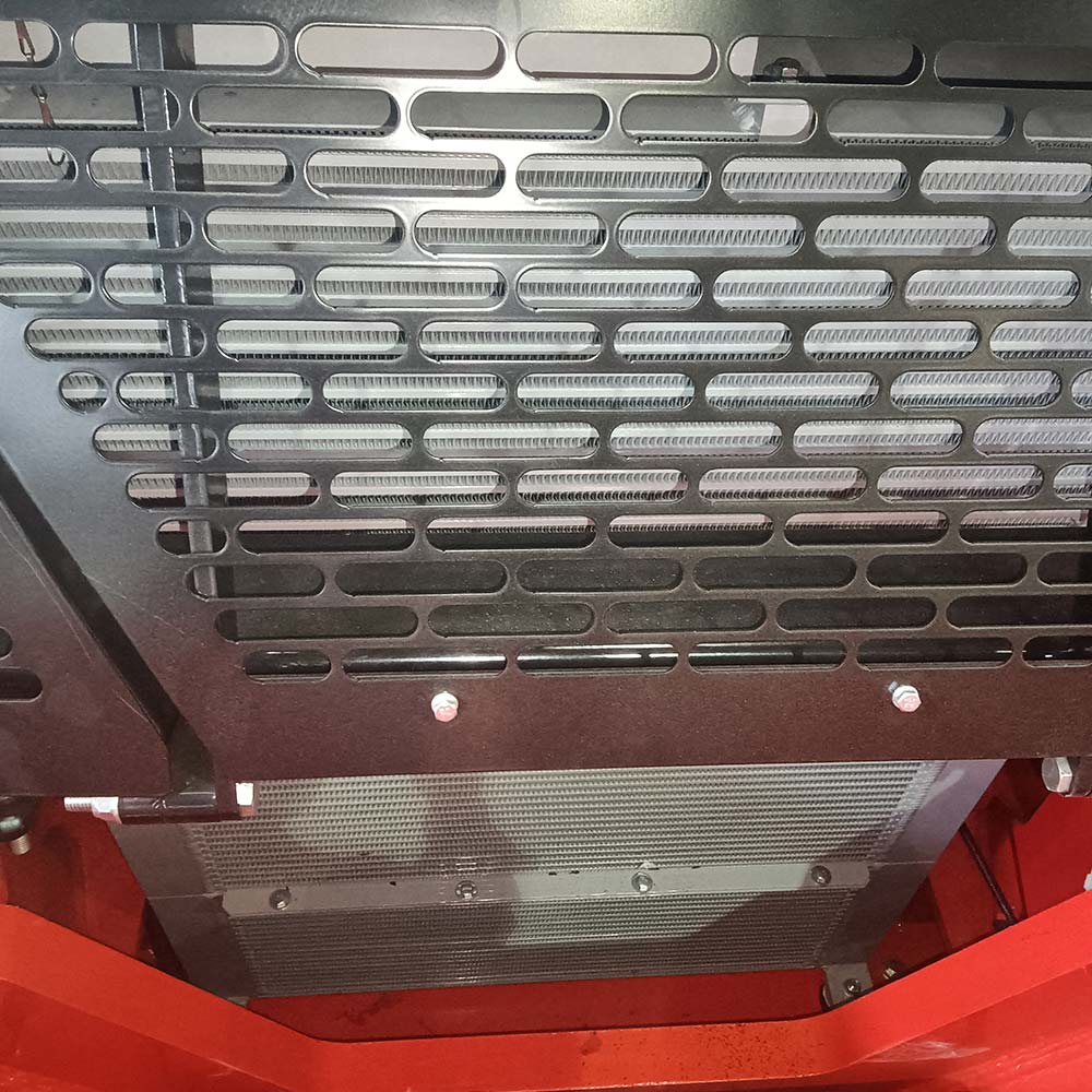 The counterweight profile is optimized to improve the rear view. An optional visual reverse radar is provided to improve operation safety.