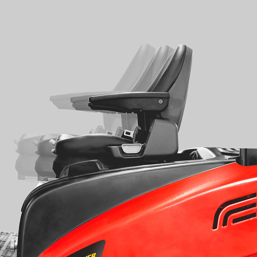 The extra foot space is provided to reduce operator fatigue significantly. The new wide-open, non-slip step makes getting in and out easy and safe.