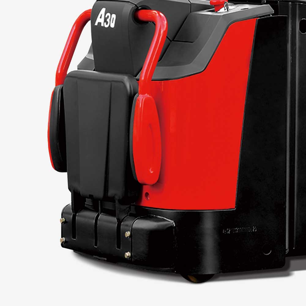 Regenerative brake and slope anti-slide function are offered by this truck. Stand-on type with high power drive motor, provides fast travel speed and good gradeability.