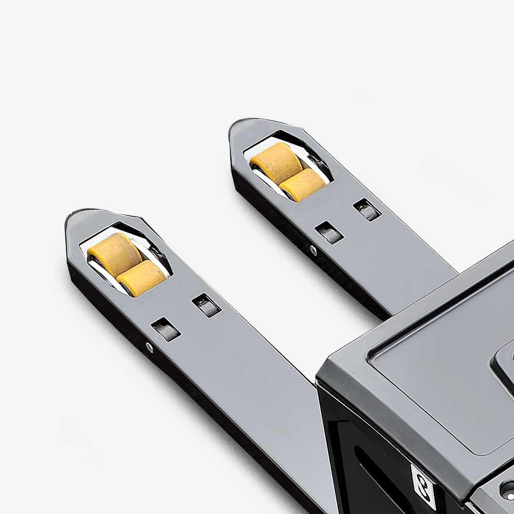 Top quality hydraulic power unit applied to provide low noise, low vibration, smooth lifting and landing reliable operation. Punch formed forks to provide more strength and tip guide to provide higher efficient operation.