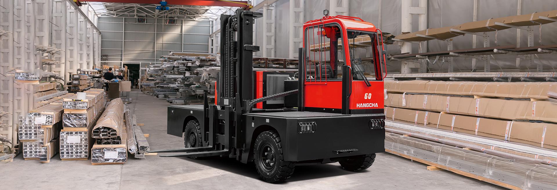 The side forklift is a special type of industrial vehicle. The main difference between it and the general counterbalanced front forklift is that the working device of the side fork is installed on the side of the vehicle body. In addition to being able to lift and tilt, it can also extend and Income.