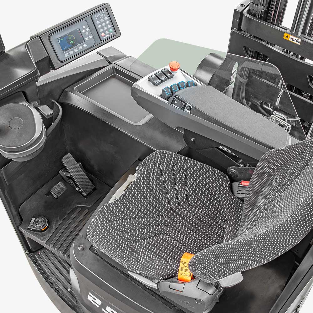 Easy access protects the reach truck against unauthorised use. Authorisation management is directly controlled via the truck’s display. Customised to your requirements and company size – you can choose between the key( Std.), PIN code and transponder
