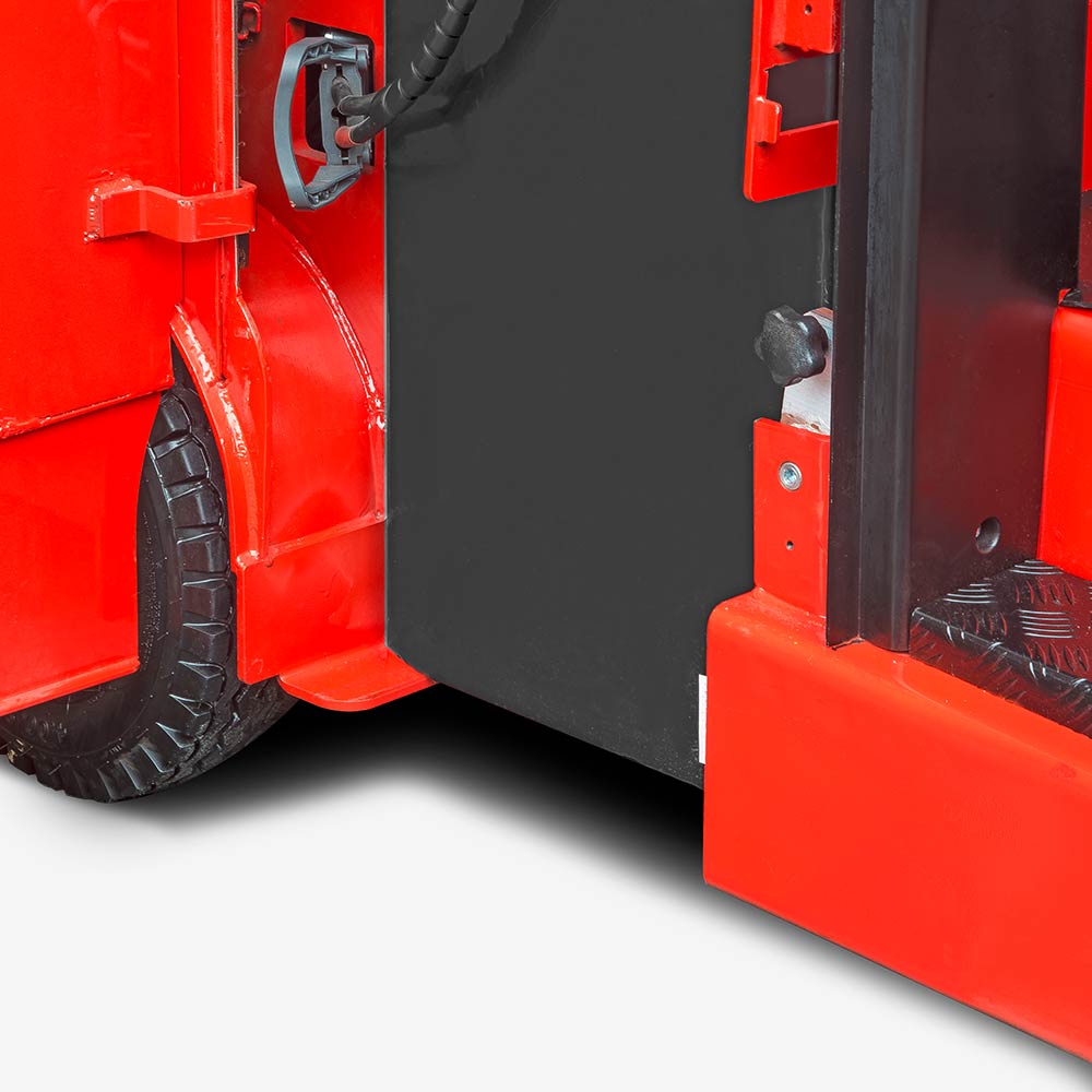 The battery is sunk to bottom of carriage, so the truck has good stability.