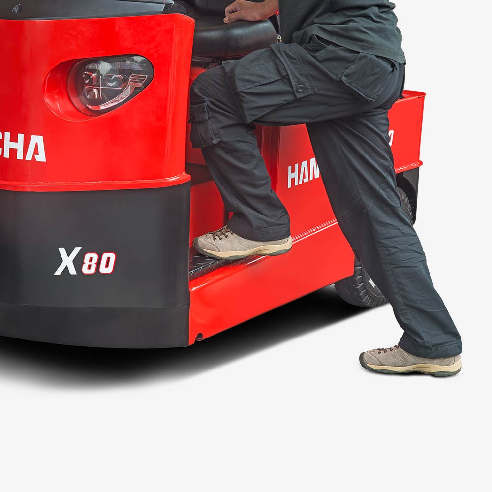 Low-level widely open foot board is very convenient for the operator to get on / off the truck