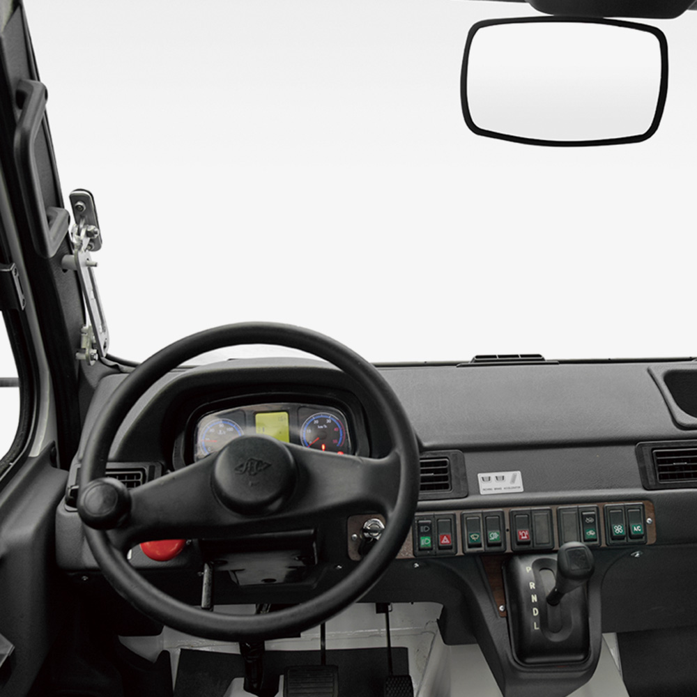 With the human-machine interaction system that consists of compact and reliable novel digital multifunctional instruments with clear liquid crystal displays, a combination rocker switch and a standard speedometer, the operations of the vehicle can be shown clearly.