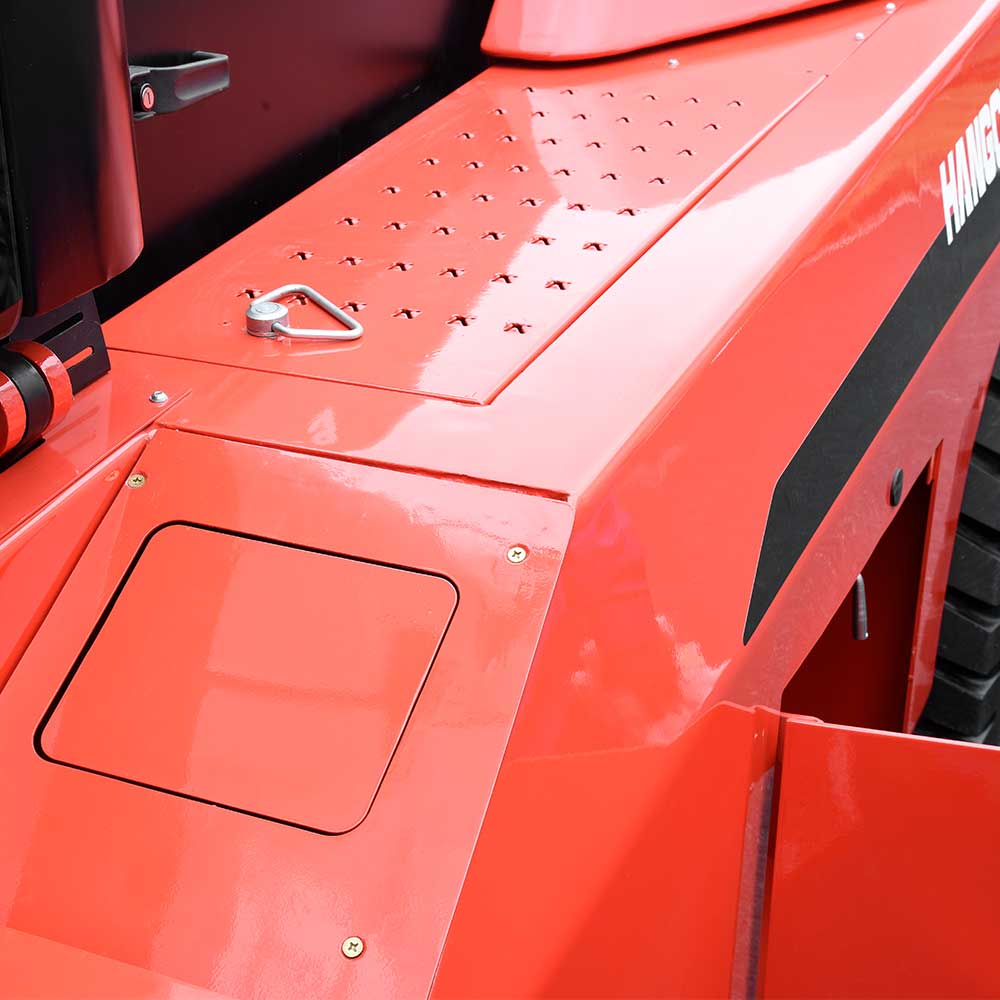 Thanks to the unique design, cab can be tilt without any tools, major service items can be reached easily by tilting the cabin, maximized access is possible.