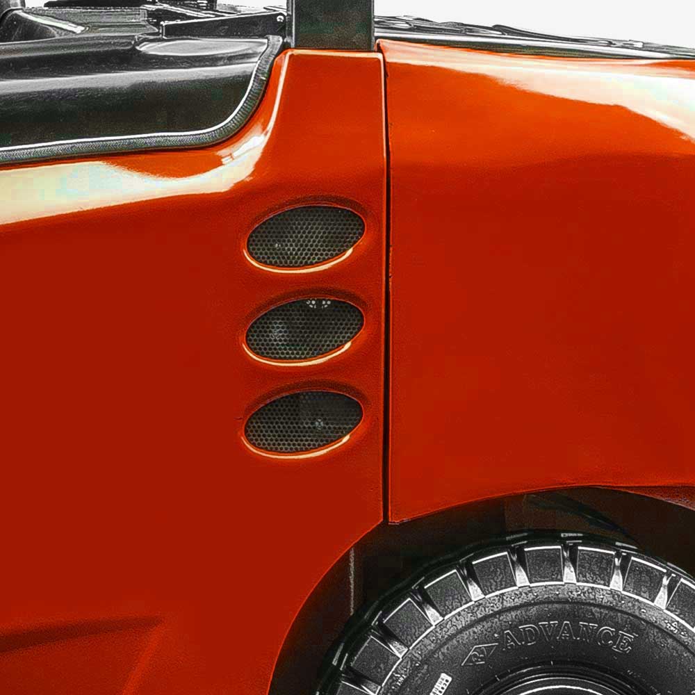 The optimized design of the wide-view mast, wide-view overhead guard and low dashboard enables a broader view of the operator and higher safety.