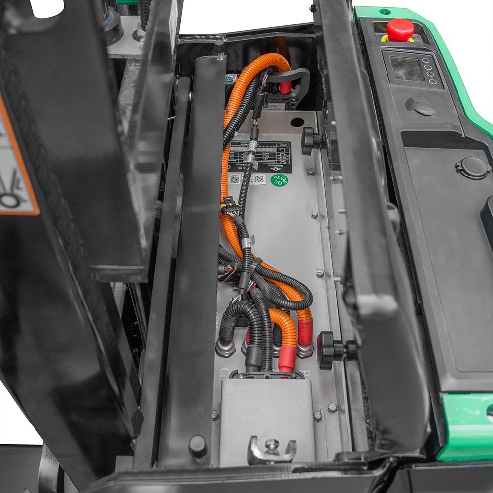 Turning speed is automatically reduced when steering (Stand-on & rider model). With three braking types: releasing brake, reversing brake and emergency brake, the driving safety has been ensured. The applied slope anti-slip function ensures the safety of the operation.