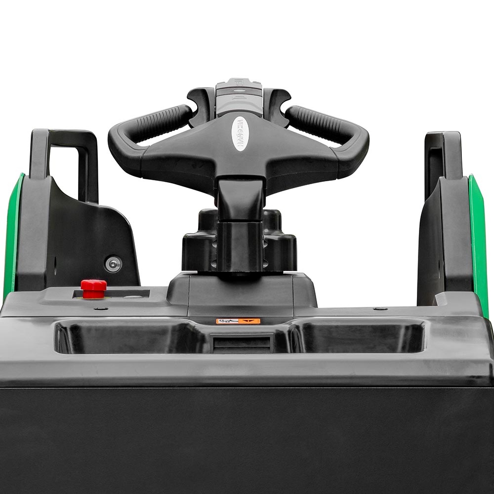 Displayed turtle speed function applied to move slowly and helps to stack goods in narrow spaces. The compact body and big rounded design provide an ideal operation in limited space, and the wedge designed chassis greatly increases the passing ability.